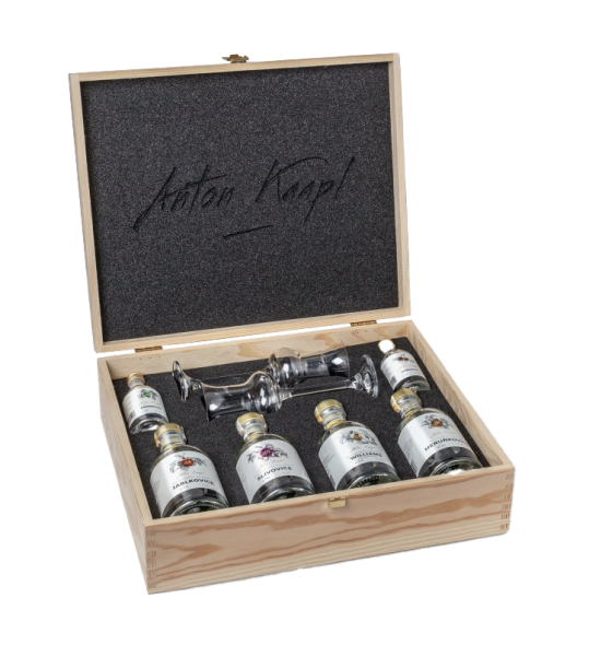 Nabízíme různé varianty dárkových balení tak, aby si u nás vybral každý. Dřevěná z borovicového dřeva a překližky s gravírovaným logem Anton Kaapl. Luxusní tzv. klapboxy z tvrdého papíru tloušťky 1,4 mm s ofsetovým barevným tiskem, matnou laminací. A přírodní z ekologické pětivrstvé papírové lepenky s jemných potiskem loga Anton Kaapl. V této kategorii naleznete také naše gravírované skleničky a dárkové poukazy.